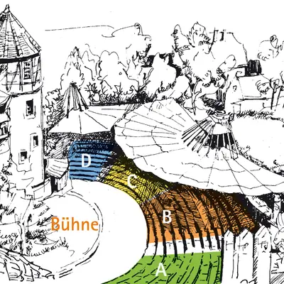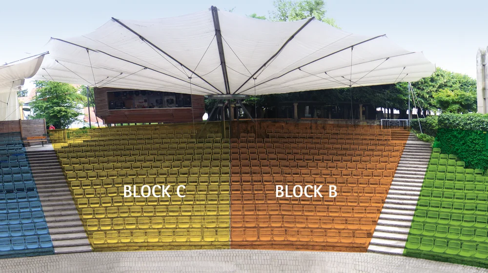 Die Plätze in den Blöcken B und C sowie im Block D sind überdacht und somit gegen Regen geschützt. Die Plätze im Block A unterhalb des Kriegerdenkmals haben keine Überdachung, sind aber der Geheimtipp unter den Freilichtbühnenfans, unter freiem Himmel und mittendrin im Theater­geschehen, echtes Freilichttheater. Außerdem gibt es noch oberhalb des Blocks B die Lindenloge, deren Plätze hinter der Mauer und unter den Blättern der Linde einen romantischen Theatergenuss bieten.